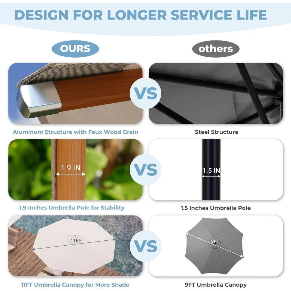 Patio Umbrella With Faux-Wood Grain Aluminum Ribs For Outdoors