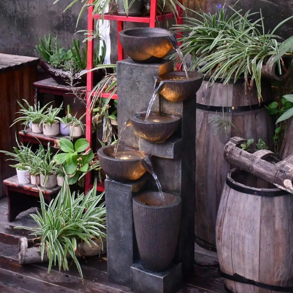 - LED Lighting: Enjoy the mesmerizing glow of built-in LED lights that illuminate the cascading water, creating a magical atmosphere during the evenings.