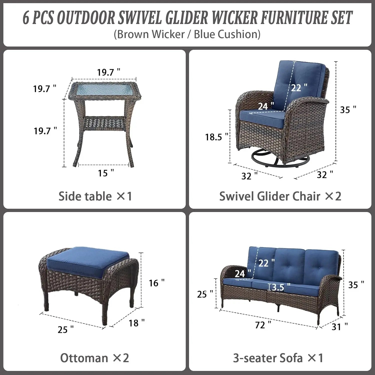 Transform your outdoor space into a sophisticated retreat with the Modern Wicker Patio Conversation Set with Swivel Rocker Chairs. Designed with a contemporary touch, this 6-piece patio furniture set is perfect for garden use, ensuring comfort and style go hand in hand.