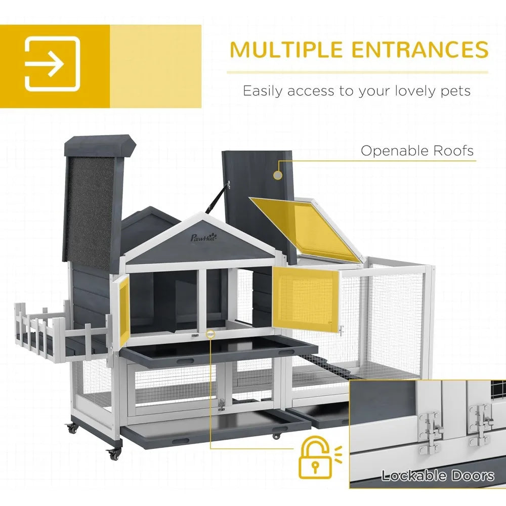 With generous dimensions of 65.2L x 21.3W x 37H inches, this large rabbit hutch offers ample living space for your rabbits to explore and play. The hutch features an openable roof which allows easy access for cleaning and maintenance, making it convenient for pet owners. Additionally, the hutch comes equipped with a lockable design, ensuring your pets are safe from predators while giving you peace of mind.
