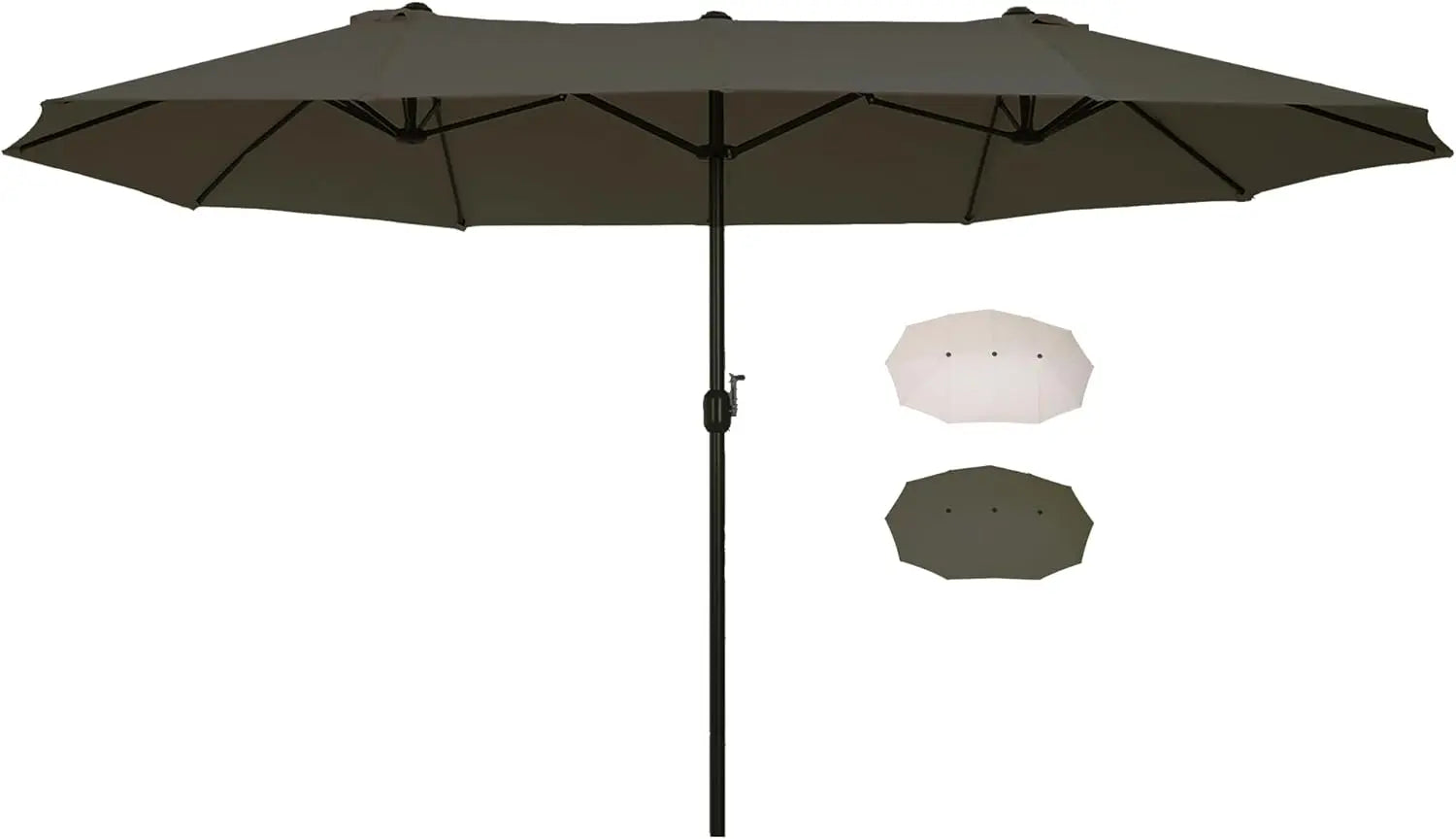 Enhance your outdoor experience with our Double-Sided Patio Umbrella with Crank Handle, designed for maximum shade and style. Measuring an impressive 15 feet in diameter, this patio umbrella is the perfect solution for those sunny days, providing ample coverage for your patio, deck, or garden. The innovative double-sided design features two 8.7-foot canopies that work together to create a spacious shaded area, making it ideal for family picnics or gatherings on a large patio.
