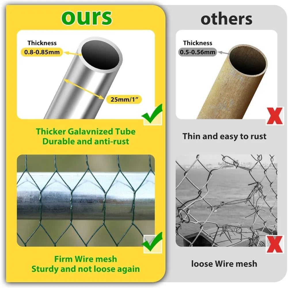 The Durable Metal Chicken Coop with Run is ideal for chicken enthusiasts looking for a reliable and secure home for their flock. Unlike typical coops that may falter in design and material, this coop stands out with its exceptional features and sturdy construction. Your chickens deserve the best, and this coop is sure to keep them happy and safe!