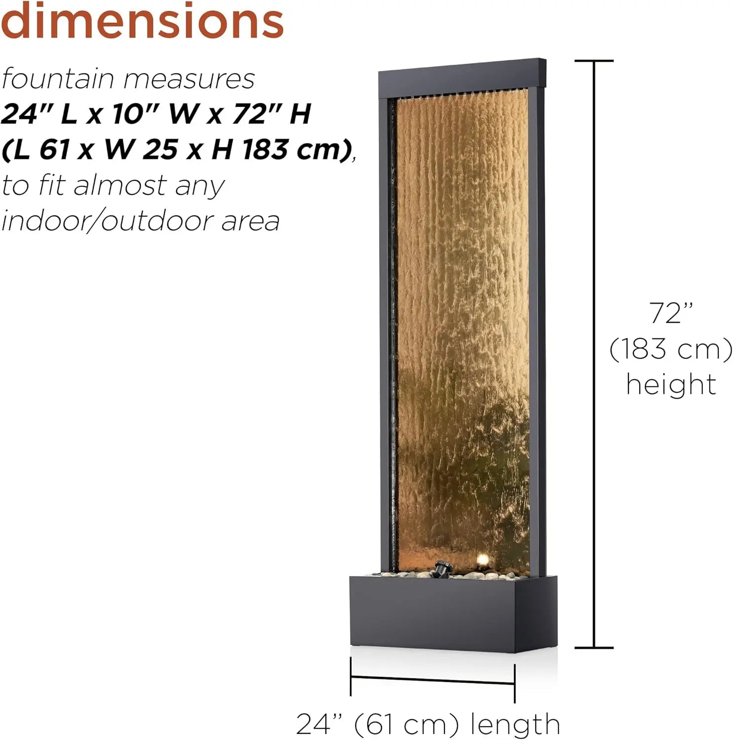 Elevate your outdoor experience with the Mirror Waterfall Fountain with Stones and LED Light. Embrace tranquility, and let the soothing sounds of flowing water rejuvenate your spirit. Don’t miss out—add this exquisite fountain to your garden today!