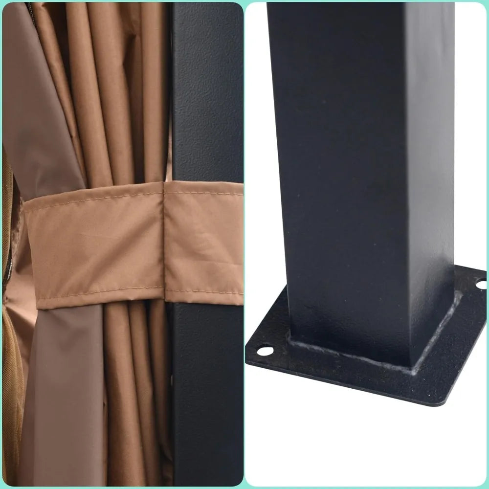 Heavy Duty Patio Gazebo with Double Roof and Privacy Curtains